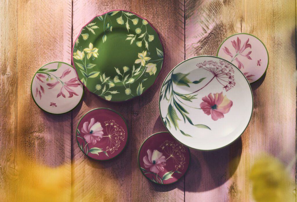 Miranda Priestly from The Devil Wears Prada may not find florals in spring groundbreaking, but we certainly think it adds some charm in spring home decor. And that is exactly what Ginori 1735’s Florenza tableware and home decor collection represents. Inspired by wildflowers that grow across the Florentine hills, it is a celebration of nature observed up close. Florenza reimagines the floral motif in a contemporary, instinctive way – not as a traditional all-over pattern, but as fragments in motion: a petal at the edge of a plate, a partial leaf, a gestural brushstroke of colour. Available in two complementary colourways: Verde Acanto, a deep botanical green, and Rosa Malva, a soft coral-lilac, the pieces are designed to be mixed and layered with ease.