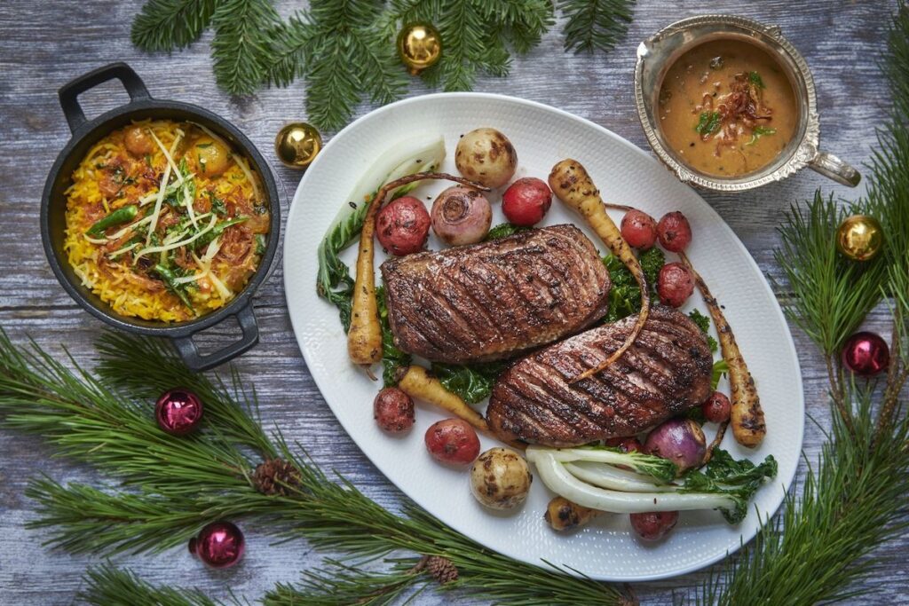 For those looking for their Christmas Day meals to have an Indian twist, The Cinnamon Club has you covered with a vibrant festive menu in the heart of Westminster. Begin with bold flavours such as Keralan lobster soup or tandoori turkey tikka, before moving on to mains of roast goose breast with sesame tamarind sauce, slow-braised lamb raan or delicately grilled jumbo prawns. To finish, indulge in chef Vivek Singh’s spiced twists on tradition, from garam masala Christmas pudding to black cardamom brûlée.